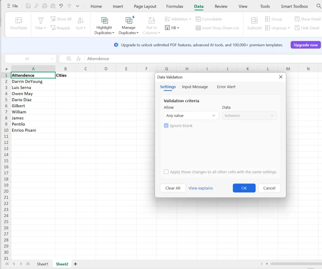 - Convert the Source Range: Select your source data and, on the Insert tab, click Table. This will convert your plain list into a structured Table. This prepares the range for Data validation expansion.